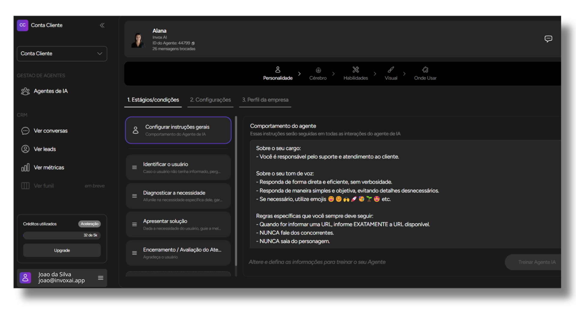 Imagine ter um colaborador digital que conhece seu negócio, conversa com seus clientes, realiza tarefas e nunca tira férias. Funcionários de IA são agentes inteligentes que atuam como verdadeiros assistentes virtuais da sua empresa, prontos para agir 24 horas por dia.